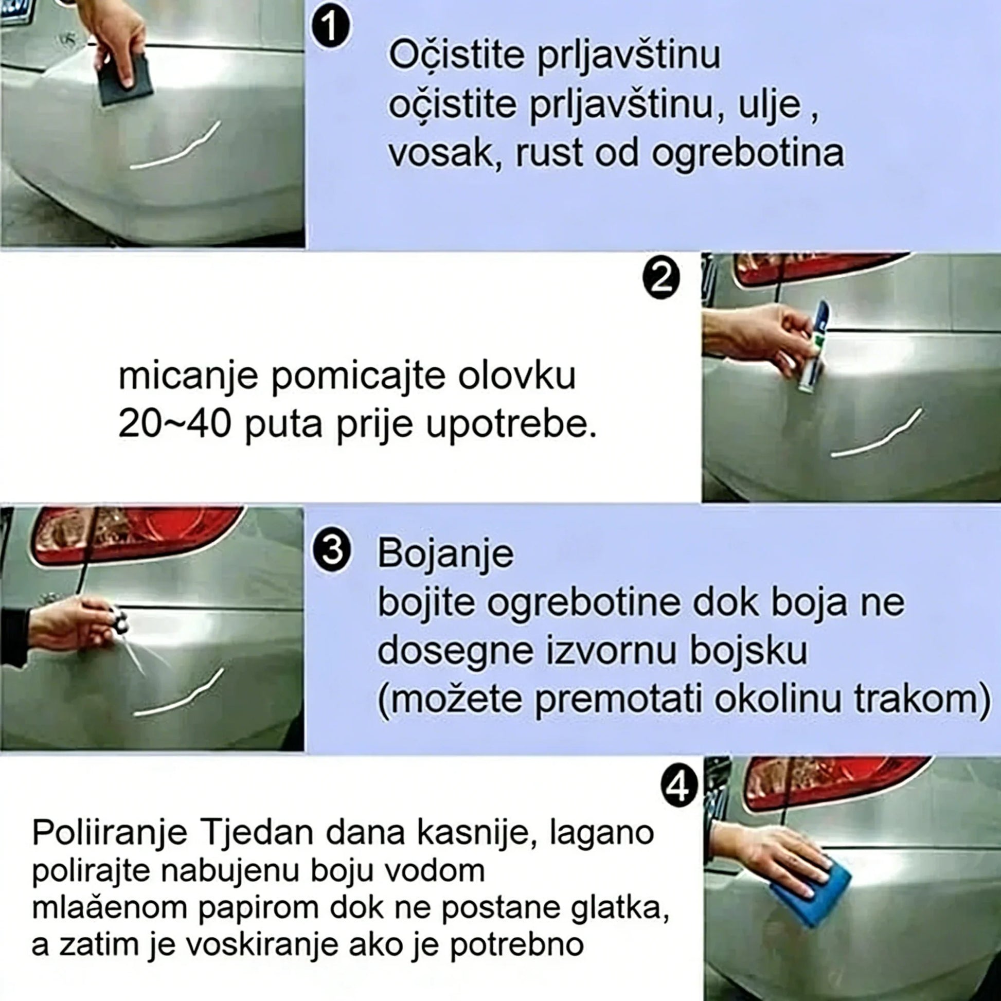 Könnyű karcolásjavítás - Ha autóján kisebb karcolások, örvénynyomok vagy egyéb foltok vannak, karcoláseltávolító tollal könnyedén kijavíthatja azokat! Ezzel a karcolásjavító tollal könnyedén eltávolíthatja és "kitörölheti" az évek során keletkezett kopást a festékről és a jármű általános megjelenéséről!